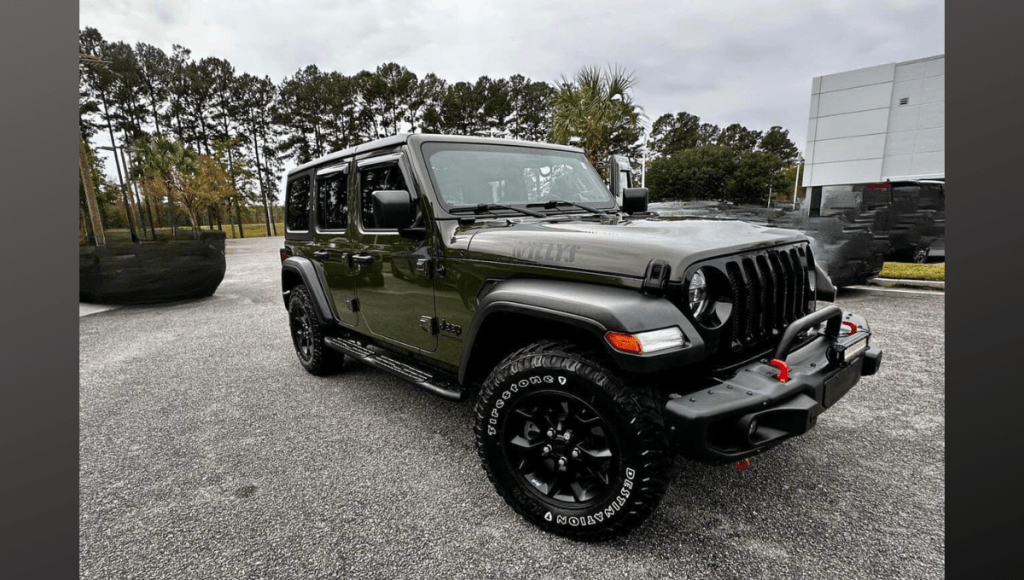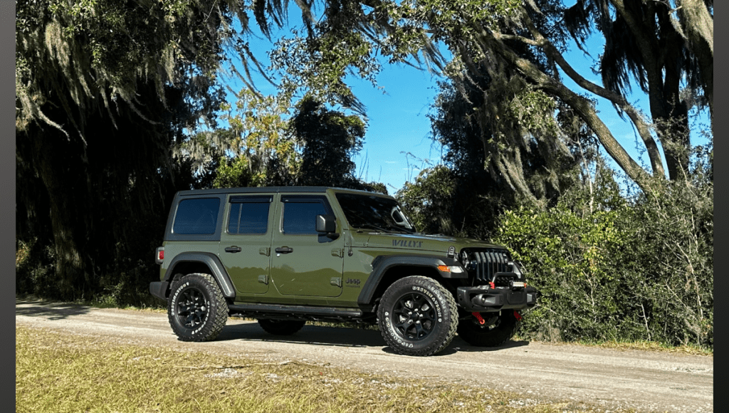 Adding fresh and fun to the E-Luxe Savannah fleet, we’re excited to offer this 2021 Jeep Wrangler Unlimited Willys 4×4 for rent.